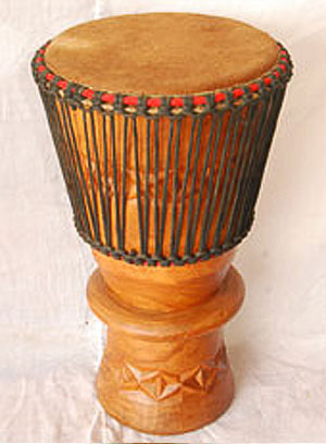 Cow skin West African drums with deep bass tones, the Bougarabou is hair unshaved for low mellow sounds and shaved for high mellow sounds. It can be played individually or in sets of two, three, or four. Five sizes are available.