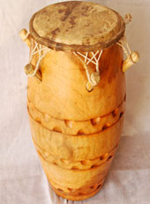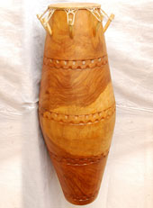 These drums originate from the Ewe people of Ghana, Togo, and Benin; they can be played either with two wooden sticks, one hand and one stick, or both hands. Throughout West Africa, the Ewe people are known for their experience in drumming. The sophisticated cross rhythms and polyrhythms in Ewe drumming are similar to those in jazz. The style of drumming is similar to sabar drumming from Senegal.