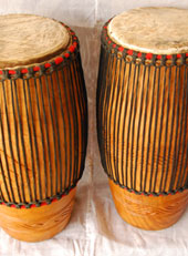 These West African drums are used like congas and are tuned by the same rope system as the Djembe.