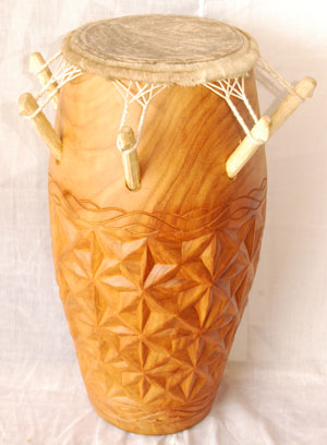 A conga shaped authentic drum from the GA people of the greater Accra region of Ghana in West Africa, the Kpanlogo produces a rich warm, smooth and crisp sound. It is easily tuned and detuned (to match other instruments) by hitting the pegs around it to stretch or loosen the ropes. The Kpanlogo is played with hands can also be played with drum sticks.